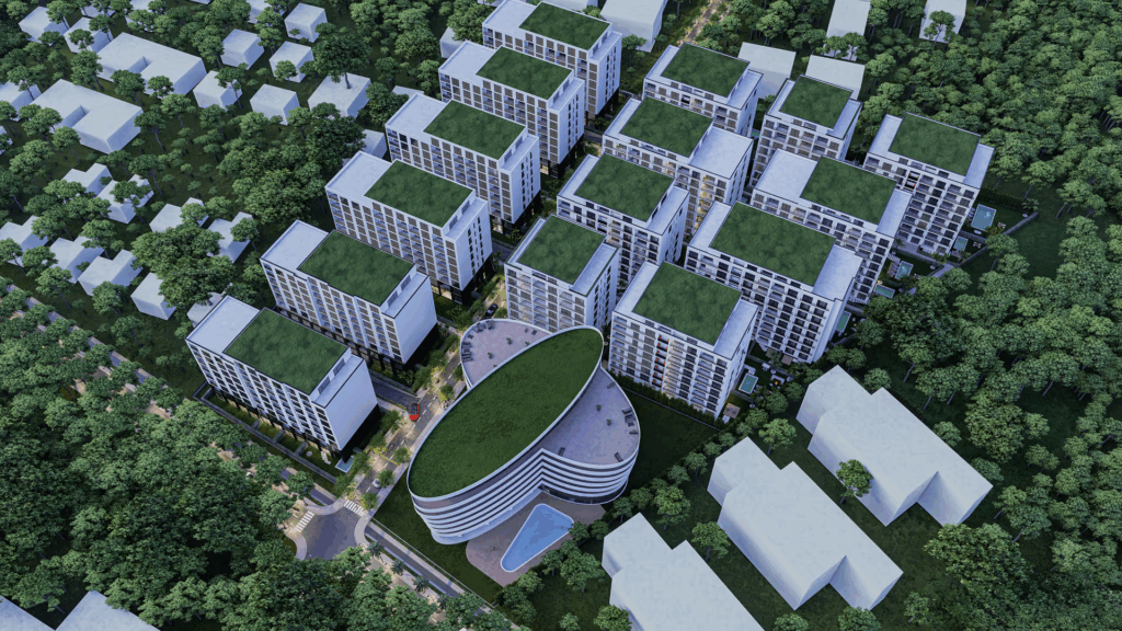 Rezydencja oferuje przestronne apartamenty, idealne do stworzenia komfortowego i stylowego domu. Kompleks został zaprojektowany z naciskiem na infrastrukturę i usługi, w tym tereny zielone, strefy relaksacyjne pod sosnami, promenady dla pieszych, baseny, place zabaw dla dzieci i przestrzenie dla rowerzystów. Znajdują się tu również powierzchnie handlowe dla firm i obiekty użyteczności publicznej.